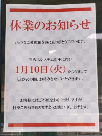 パチンコ店「ジョア」(JOIE)が休業していましたので
