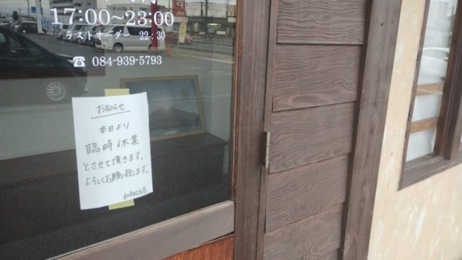 貼り紙には、「本日より臨時休業」と書かれていて、